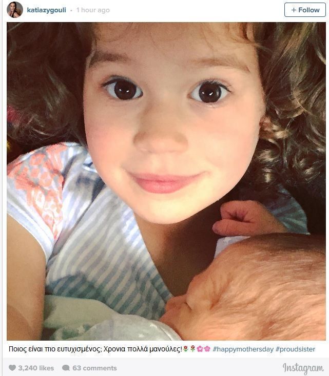 Στην λεζάντα η Κάτια γράφει γεμάτη νόημα: «Ποιος είναι πιο ευτυχισμένος; Χρόνια πολλά μανούλες»!