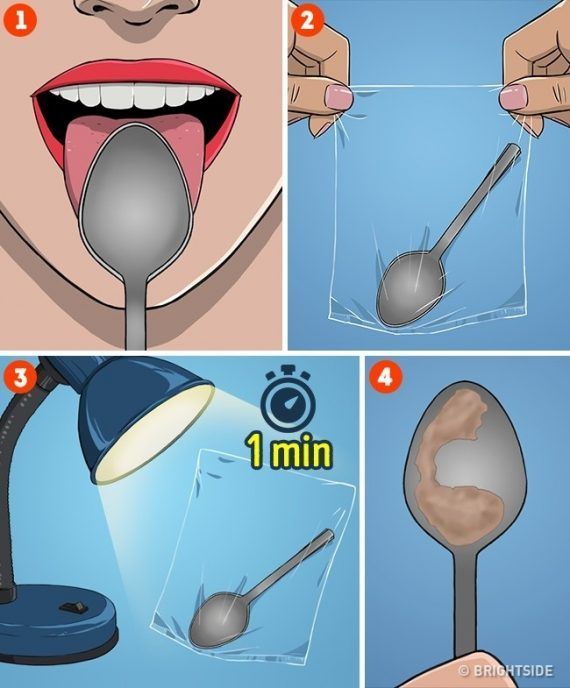 - Πάρτε ένα κοινό κουτάλι, και ξύστε το σε όλη την επιφάνεια της γλώσσας, και βρέξτε το αρκετά με το σάλιο σας.