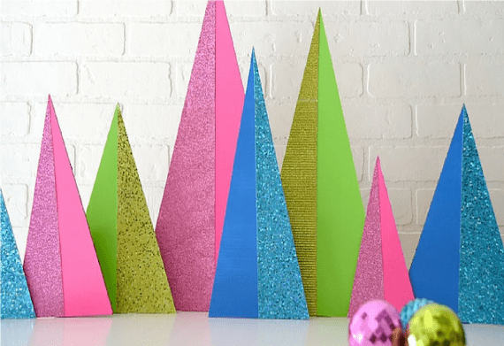 Μπορείτε να φτιάξετε με τα παιδάκια σας μοντέρνα χριστουγεννιάτικα δέντρα εύκολα και απλά. Θα χρειαστείτε λευκό χαρτόνι, χαρτί με γκλίτερ, χρώμα για χειροτεχνίες που θα ταιριάζει με το χρώμα του δέντρου που θα επιλέξετε, κόπτη, κόλλα, πινέλο, ρολό από χαρτί τουαλέτας. Δείτε εδώ λεπτομέρειες.