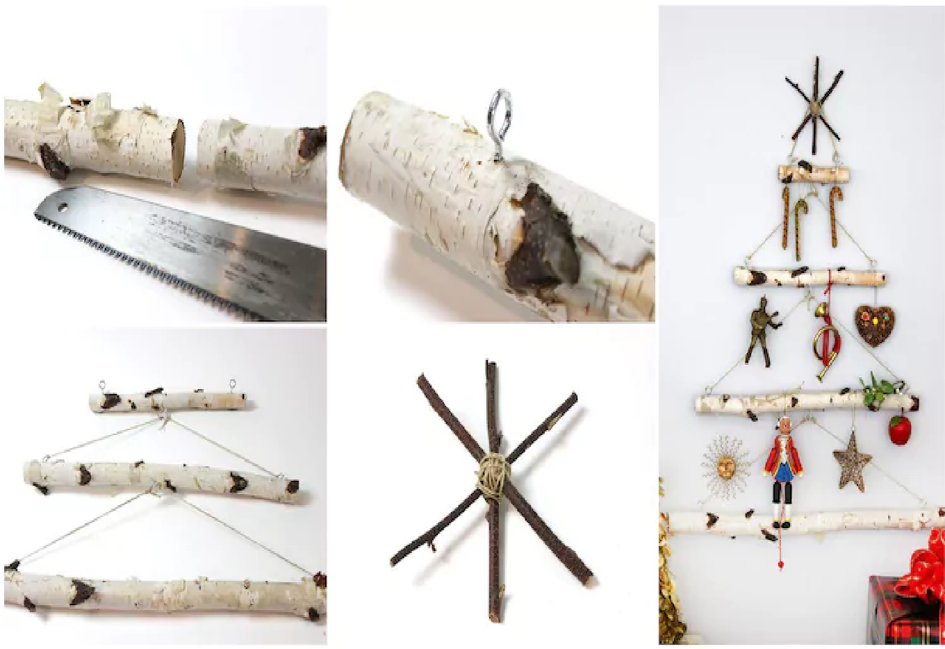 Φτιάξτε ένα χριστουγεννιάτικο δέντρο στο τοίχο σας με κλαδιά σημύδας. Δείτε εδώ λεπτομέρειες.