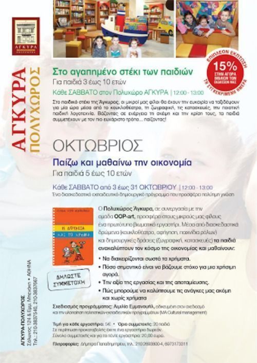 ένα πρωτότυπο βιωματικό εργαστήρι. Μέσα από διασκεδαστικά δρώμενα (κουκλοθέατρο, αφήγηση, παιχνίδια ρόλων) και δημιουργικές δράσεις (ζωγραφική, κατασκευές) τα παιδιά ανακαλύπτουν τον κόσμο της οικονομίας και μαθαίνουν: