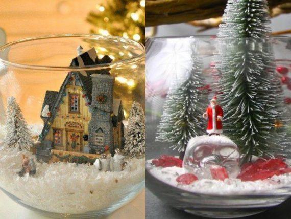 Θα φτιάξουμε Χριστουγεννιάτικες αναπαραστάσεις μέσα στις γυάλες ή θα κάνουμε αυτές τις γυάλες χριστουγεννιάτικο διακοσμητικό με λίγα φωτάκια, κουκουνάρια ή Χριστουγεννιάτικες μπάλες. Γενικότερα το μόνο που έχουμε να κάνουμε είναι να αφήσουμε την φαντασία μας ελεύθερη.