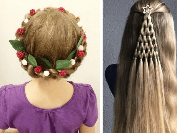 Τέλος, σου έχω επιλογές και για τις μικρές κυρίες που πραγματικά το χαίρονται περισσότερο από εμάς. Τα μικρά κοριτσάκια λατρεύουν να κάνουν περίεργα χτενίσματα που να ταιριάζουν με την εποχή οπότε αν η αγαπημένη μικρή σου κυρία σου ζητήσει να της κάνεις ένα μαλλί Χριστουγεννιάτικο, ιδού ιδέες!