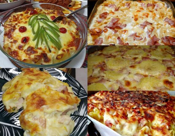 3) Σουφλέ ζυμαρικών με μπεσαμέλ από διάφορα τυριά, ζαμπόν και θυμάρι