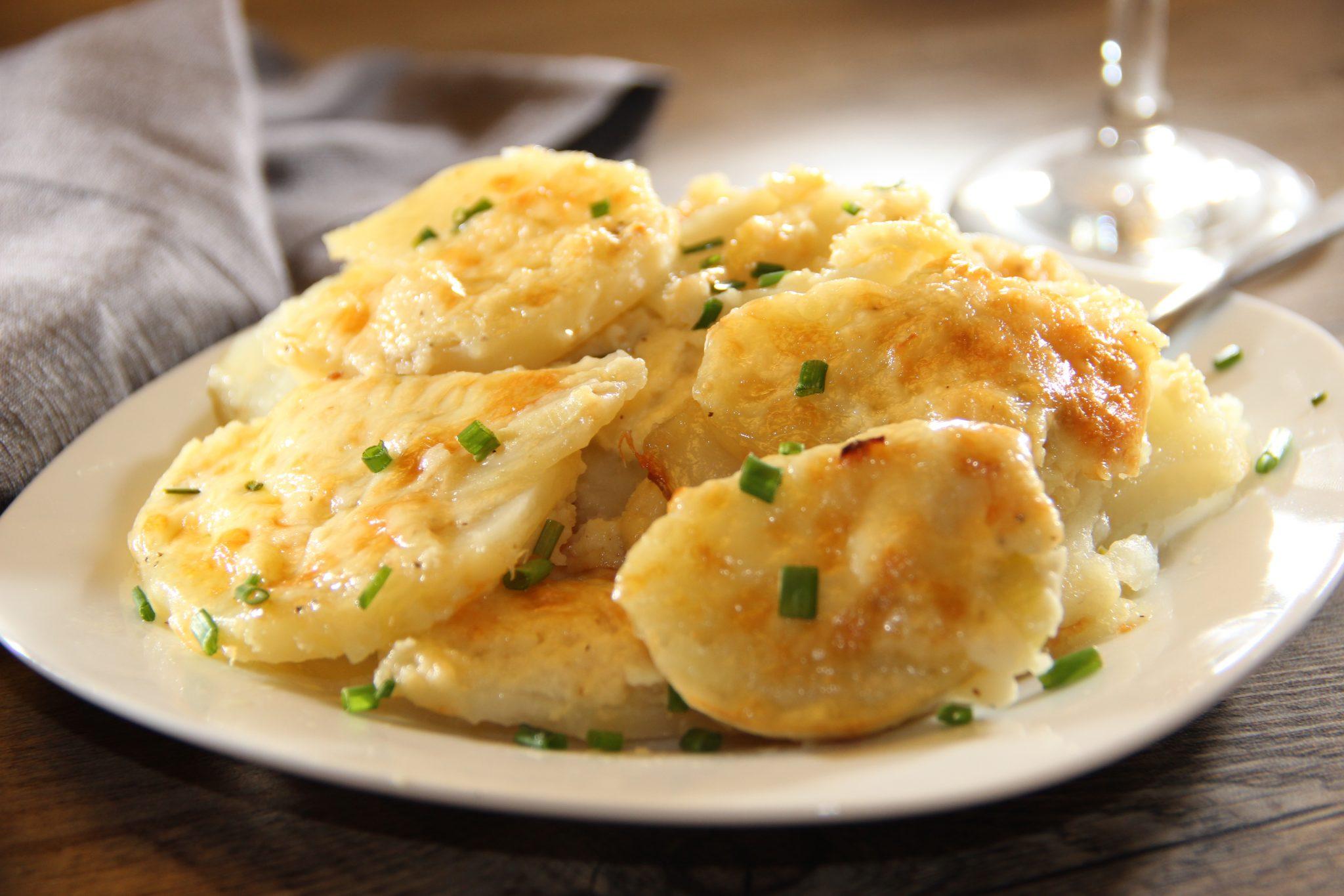 Πατάτες ογκρατέν ΥΛΙΚΑ: 1 κιλό πατάτες Lucia’s Farm 80 γραμμάρια βούτυρο ( τα 50 θα τα έχετε λιώσει). 3 κουταλιές της σούπας ελαιόλαδο 2 κουταλιές της σούπας θυμάρι ψιλοκομμένο 2 κουταλιές της σούπας δεντρολίβανο 3-4 φύλλα δάφνης