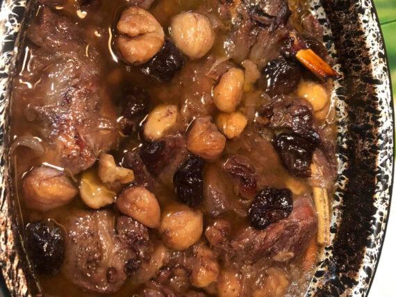 Εκτέλεση για το αγριογούρουνο στη γάστρα με κάστανα και δαμάσκηνα
