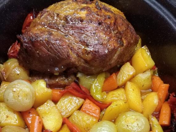 Συνταγή για γιορτινό στιφάδο με διάφορα λαχανικά στη γάστρα από χοιρινή σπάλα. Σιγομαγειρεμένο χοιρινό με την γλύκα των λαχανικών για τα Χριστούγεννα και την Πρωτοχρονιά με όλα τα μυστικά της γιαγιάς.