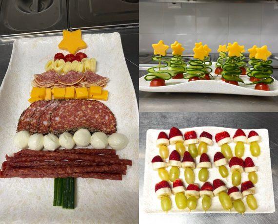Θα φτιάξουμε χριστουγεννιάτικα ορεκτικά από αγγούρι, πολύχρωμες πιπεριές, καρότο, φράουλες, σταφύλια, μπανάνες, σαλάμι αέρος, μπύρας, ζαμπόν ή όποιο άλλο αλλαντικό θέλουμε και γενικά, βάλτε την φαντασία σας να δουλέψει!