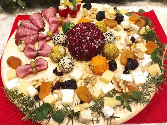 Δείτε παρακάτω την εκτέλεση για τη Γιορτινή πιατέλα με Μπάλα Τυριού αλλαντικά και ξηρούς καρπούς: