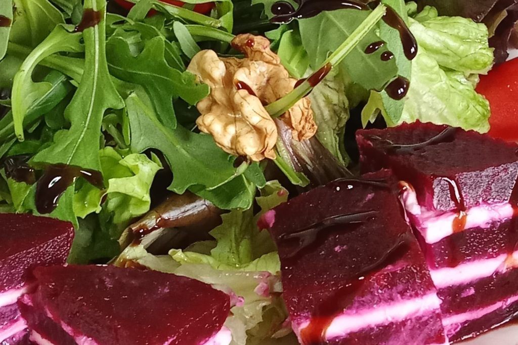 Δείτε παρακάτω την εκτέλεση για τη Χριστουγεννιάτικη σαλάτα με ρόκα και παντζάρι: