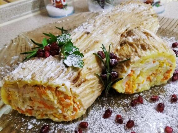 Ένα εντυπωσιακό και πεντανόστιμο ορεκτικό ετοιμάσαμε για εσάς σήμερα που θα κλέψει τις εντυπώσεις στον Χριστουγεννιάτικο μπουφέ αλλά και στο Χριστουγεννιάτικο τραπέζι. Ένας αλμυρός κορμός με γαλοπούλα, πατάτες και μερικά ακόμη απλά υλικά, που μπορούμε να τον φτιάξουμε και με κοτόπουλο!