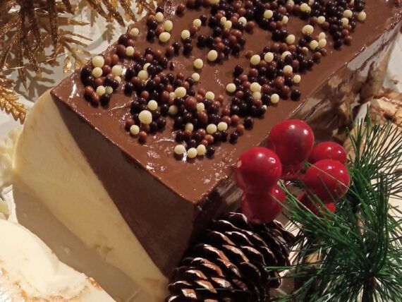 Εκτέλεση για τον Χριστουγεννιάτικο κορμό με κρέμα σοκολάτα – βανίλια