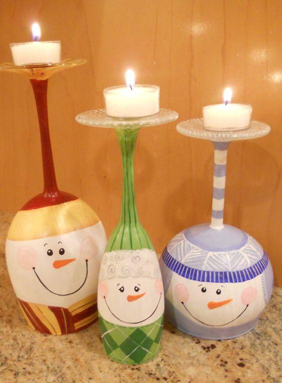 Αν πάλι πιάνει λίγο το χέρι σου, μπορείς να προμηθευτείς χρώματα για γυαλί σε διάφορα χρώματα και να δώσεις μια όμορφη μορφή στα ποτήρια σου. Μερικές κλασικές και διαχρονικές προτάσεις για να δώσεις μια γιορτινή ατμόσφαιρα στο σπίτι σου, είναι το να ζωγραφίσεις έναν χιονάνθρωπο, έναν τάρανδο, ελάφια, τον Άγιο Βασίλη ή ακόμη και έναν πιγκουίνο. Βέβαια, από την άλλη πλευρά, μπορείς πολύ απλά να ζωγραφίσεις μερικά αστέρια σε διάφορα μεγέθη.