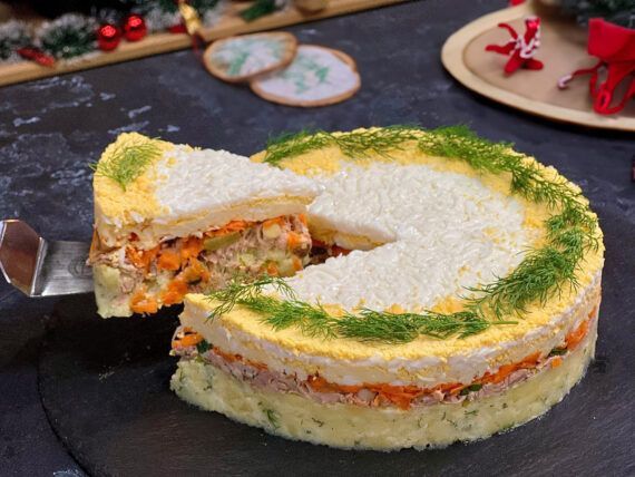 Ο γιορτινό σας μπουφές δε θέλει κόπο, θέλει τρόπο και φαντασία. Κι αν έχετε ξεμείνει από ιδέες ο Παναγιώτης Παπαδάκης είναι εδώ για εσάς. Μοιράζεται μαζί μας μία εύκολη και γιορτινή σαλάτα σαν τούρτα με τόνο, αυγά, μαγιονέζα και πατάτες που θα ξετρελάνει μικρούς και μεγάλους.