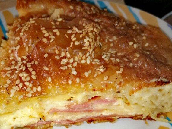 Συνταγή για ζαμπονοτυρόπιτα με τραγανό φύλλο κρούστας για τον γιορτινό μπουφέ τα Χριστούγεννα. Με πάριζα, τυριά που λιώνουν και βούτυρο για μία πίτα με πλούσια και αφράτη γέμιση που θα γλείφετε και τα δάχτυλά σας.