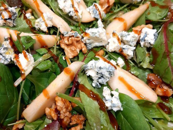 Σε ένα Χριστουγεννιάτικο ή σε ένα Πρωτοχρονιάτικο μπουφέ παίζει πολύ σημαντικό ρόλο η γιορτινή σαλάτα που θα επιλέξουμε να τον αναδείξουμε. Έτσι σήμερα θα μοιραστούμε μαζί σας μία γιορτινή σαλάτα με αχλάδι και ρόκα .Υγιεινή και πεντανόστιμη γιορτινή σαλάτα με μπαλσάμικο από σύκα, μπλε τυρί, αχλάδι, ρόκα. σπανάκι, φύλλα παντζαριού και λόλες.