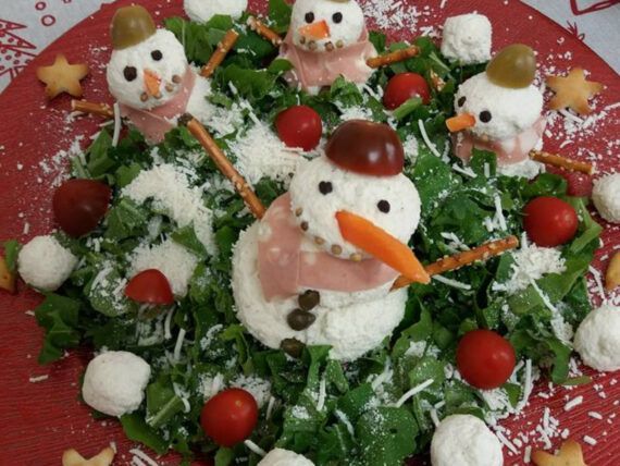 Από τον Χριστουγεννιάτικο μπουφέ ή το Χριστουγεννιάτικο τραπέζι δεν μπορεί να λείπει η σαλάτα. Και σήμερα σας έχουμε την πιο νόστιμη και την πιο ευφάνταστη Χριστουγεννιάτικη σαλάτα από τυρένιους χιονάνθρωπους που θα κλέψουν την παράσταση και φτιάχνονται πανεύκολα.