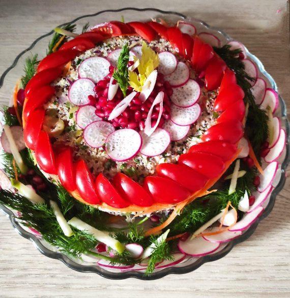 Άλλη μία Πρωτοχρονιά πλησιάζει και θέλουμε να την απολαύσουμε όπως της αξίζει. Έτσι σήμερα φτιάχνουμε για εσάς μία υγιεινή αλλά και πεντανόστιμη γιορτινή σαλάτα με κινόα, φρέσκο και ξερό κρεμμύδι, ρόδι, σώς λεμονιού, ραπανάκια, αγγούρι, ντοματίνια και μερικά ακόμη απλά και υγιεινά λαχανικά.