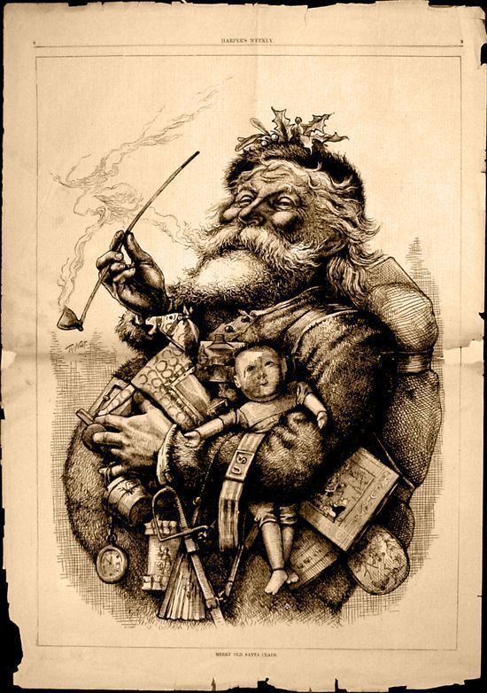 Σύμφωνα με μια άλλη άποψη ο Santa Claus γεννήθηκε κατά τη διάρκεια του αμερικανικού Εμφυλίου, όταν ο Ναστ εργαζόταν στο Harper’s Weekly, στο μεγαλύτερο περιοδικό της εποχής και του είχε ανατεθεί να απεικονίζει με αλληγορικές εικόνες τα δρώμενα του πολέμου. Μία από αυτές ήταν “Ο Άγιος Βασίλης στο στρατόπεδο”, όπου παρουσιάστηκε για πρώτη φορά ο Άγιος με τα χαρακτηριστικά ενός ευτραφούς, ροδαλού άνδρα, στολισμένου από άστρα, ο οποίος μοίραζε δώρα σε ένα στρατόπεδο των Βορείων.
