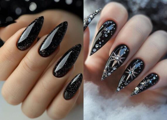Ιδέες για μαύρα Χριστουγεννιάτικα νύχια με γκλίτερ και στρας που θα πρωταγωνιστήσουν τα Χριστούγεννα 2024. Μανικιούρ για κοντά και μακριά νύχια φουλ glamorous για την πιο λαμπερή μέρα του Χρόνου.
