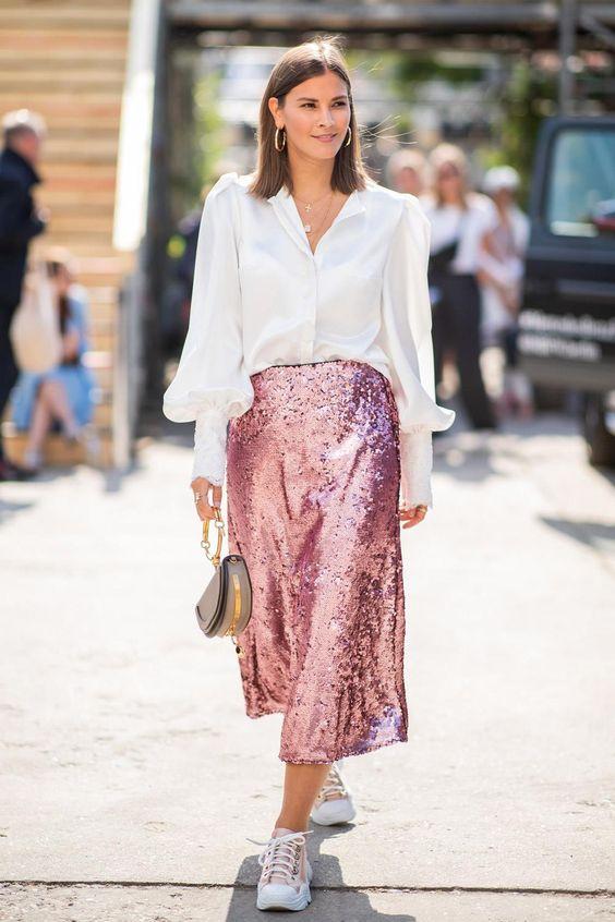 Φυσικά το λευκό πουκάμισο είναι πάντα μία πολύ καλή και κομψή επιλογή για να φορέσεις την sparkling φούστα σου, ακόμα και σε περιστάσεις που σου φαίνεται υπερβολική.