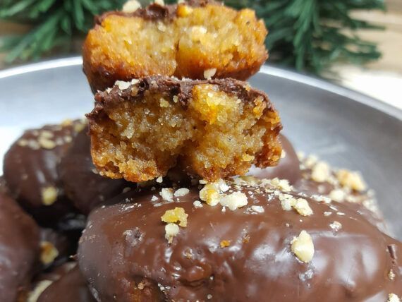 Συνταγή για σοκολατένια μελομακάρονα με κονιάκ. Μελομακάρονα…μεθυσμένα με κονιάκ και επικάλυψη σοκολάτας που θα ξετρελάνουν τους πάντες. Αφράτα, μελωμένα και με σίγουρη επιτυχία για τον Χριστουγεννιάτικο ή τον Πρωτοχρονιάτικο μπουφέ. Με απλά υλικά, μοσχοβολούν Χριστούγεννα και λιώνουν στο στόμα.