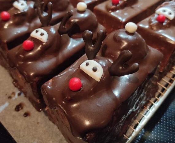 Εκτέλεση για το παντεσπάνι στις Σοκολατένιες Χριστουγεννιάτικες πάστες rudolf: