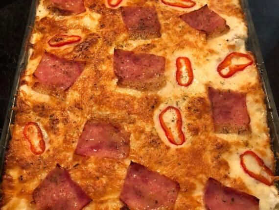 Δείτε παρακάτω την εκτέλεση για το σουφλέ ζυμαρικών σαν πίτσα για το Γιορτινό τραπέζι: