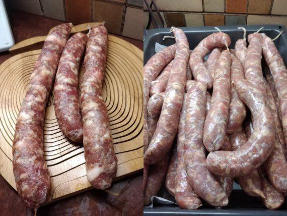 Τα λουκάνικα είναι έτοιμα όταν το έντερο στεγνώσει και πάρει σκούρο χρώμα. Στην συνέχεια τα χωρίζουμε και τα διατηρούμε στην κατάψυξη για πολύ καιρό.