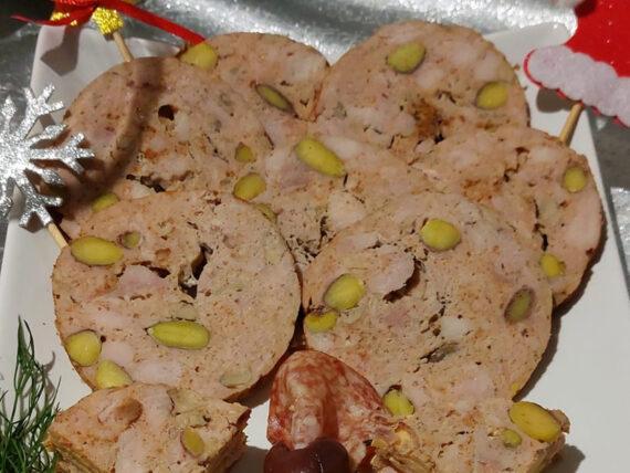 Δείτε παρακάτω την εκτέλεση για το σπιτικό αλλαντικό κοτόπουλο με φιστίκια Αιγίνης και μανιτάρια: