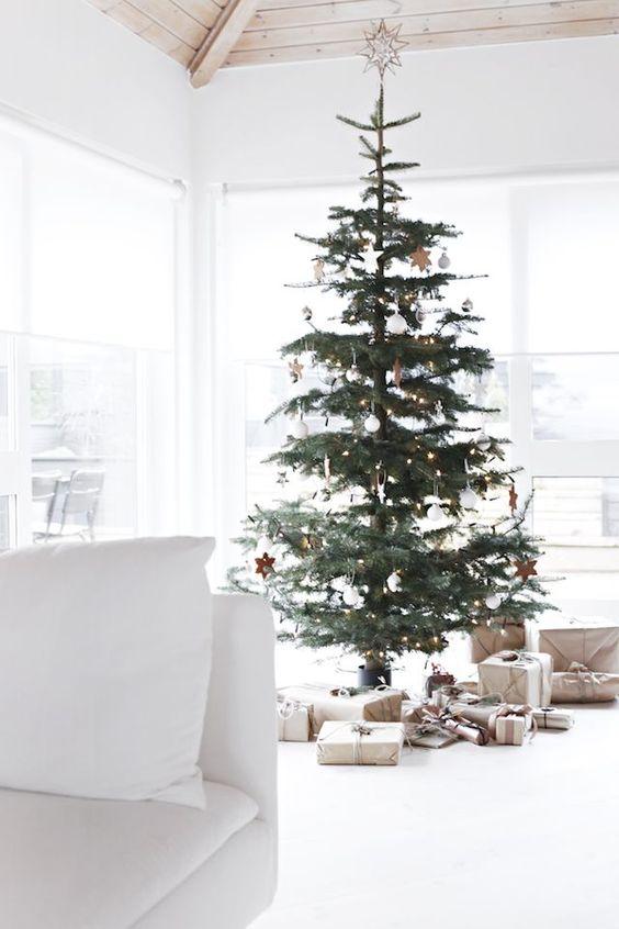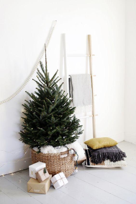 Μια από τις πιο καυτές ιδέες που γίνεται όλο και πιο δημοφιλής είναι τα μη διακοσμημένα χριστουγεννιάτικα δέντρα. Πάρτε ένα δέντρο που σας αρέσει και τοποθετήστε το σε ένα δοχείο που προτιμάτε: ένα κιβώτιο, ένα κουτί, ένα καλάθι ή οποιοδήποτε άλλο που ταιριάζει στο στυλ σας. Μπορείτε να προσθέσετε κάποια φώτα ή απλά αφήστε το δέντρο όπως είναι, ΚΑΙ απολαύστε τη φυσική ομορφιά του.