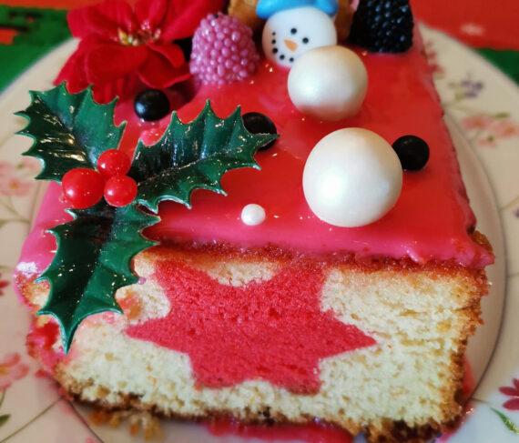 Το κέικ των Χριστουγέννων είναι αφράτο και πεντανόστιμο, σε γιορτινό κόκκινο χρώμα με εντυπωσιακά Χριστουγεννιάτικα σχέδια. Για να κλέψει τις εντυπώσεις στο Χριστουγεννιάτικο και στο Πρωτοχρονιάτικο ρεβεγιόν, τόσο για την γεύση του όσο και για την εμφάνισή του.