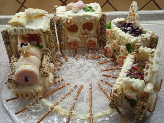 Μπορούμε να στολίσουμε και να γεμίσουμε τα βαγόνια με ό,τι μας αρέσει. Για παράδειγμα τουρσί, ελιές, αλλαντικά, τυριά, λάχανο κι άλλα λαχανικά, ακόμη και γαριδάκια.