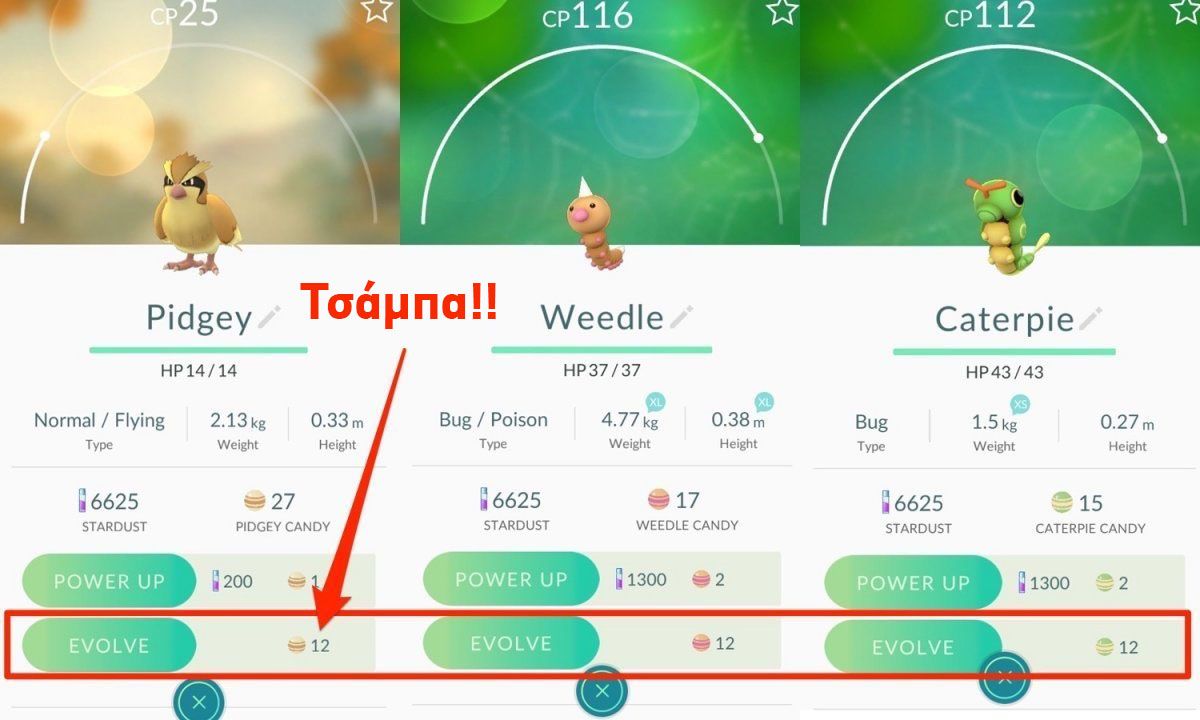 #9 Για να ανεβαίνετε level πιο γρήγορα… Συνεχίστε να μαζεύετε Pidgeys, Rattatas, Weedles, Caterpies, αφού κοστίζουν πολύ λίγο για να τα κάνετε evolve, συγκριτικά με άλλα πόκεμον.