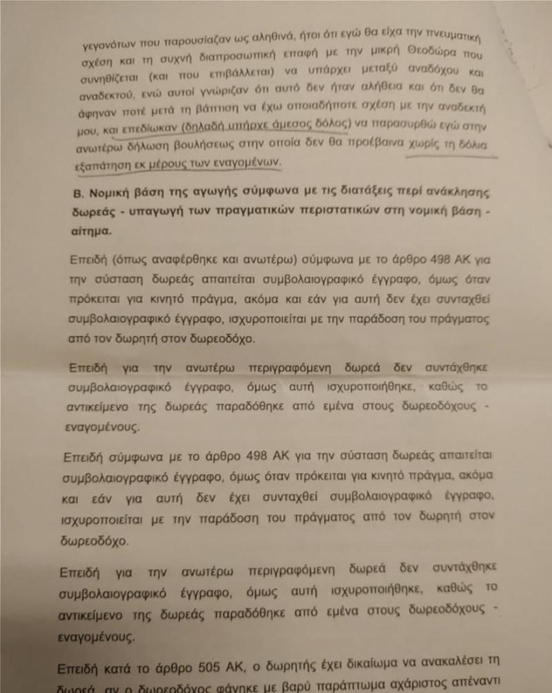 Μάλιστα πριν το μυστήριο είχε δώσει τον σταυρό στους γονείς, ενώ είχε αγοράσει τα καλύτερα και ακριβότερα ρούχα για το παιδί.Στην αγωγή της ωστόσο υπογραμμίζει πως δεν είχε υπολογίσει τον οικονομικό παράγοντα καθώς ήθελε να γίνει μια πολύ ωραία βάφτιση.