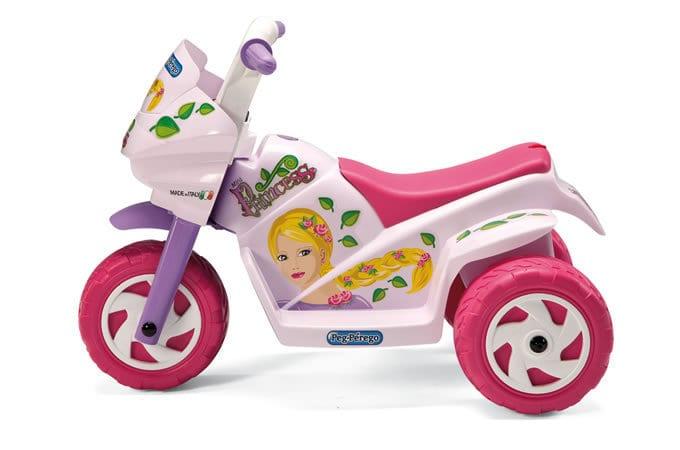 Πρόκειται για το ροζ ηλεκτροκίνητο τρίκυκλο μηχανάκι της Peg Perego, Mini Princess. Διαθέτει κλάξον, γκάζι και φρένο με ένα πετάλι, επιταχύνει πάντα προς τα εμπρός & πίσω έχει 2 τροχούς για περισσότερη ισορροπία. Περιλαμβάνει μπαταρία και φορτιστή 6V.