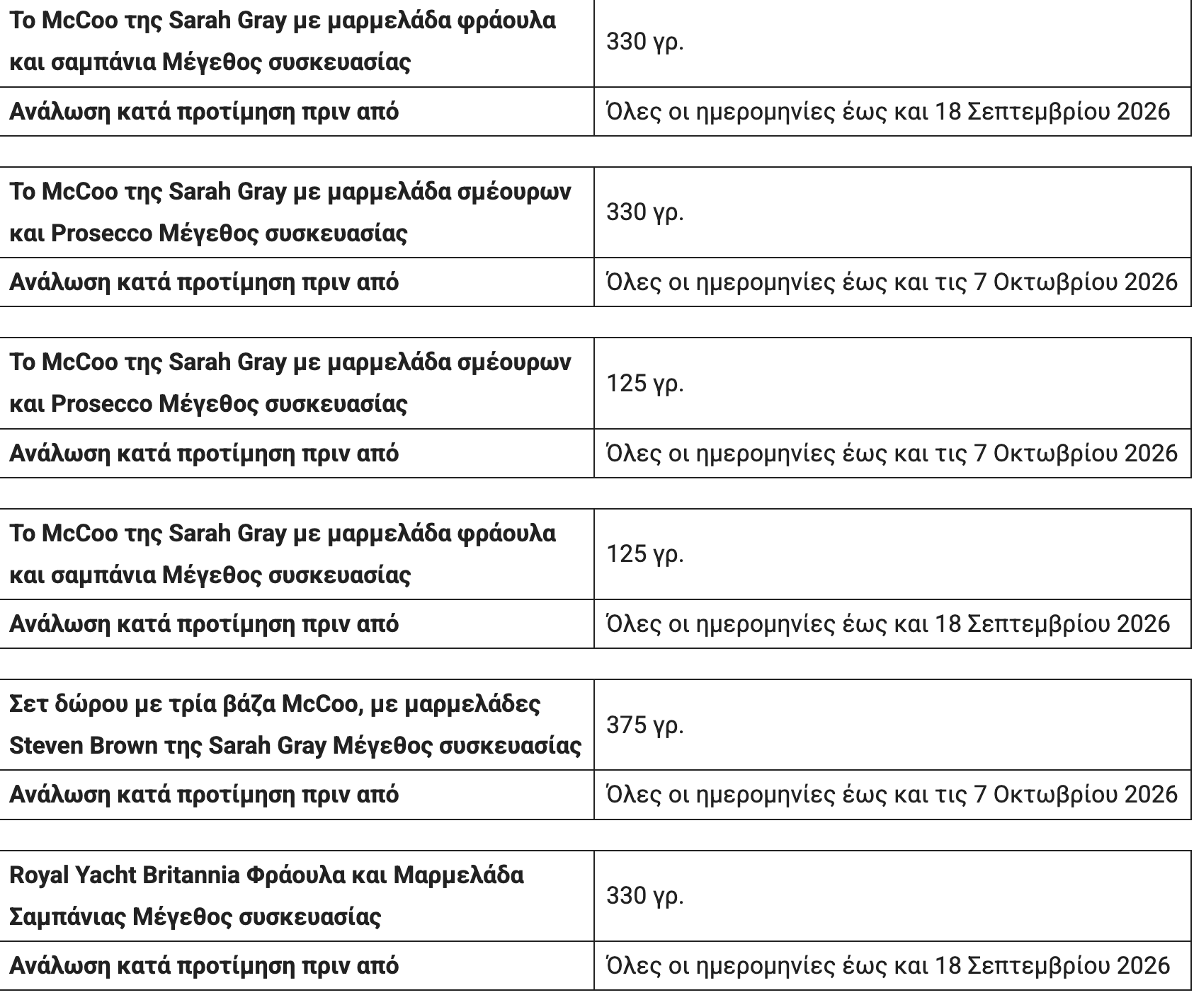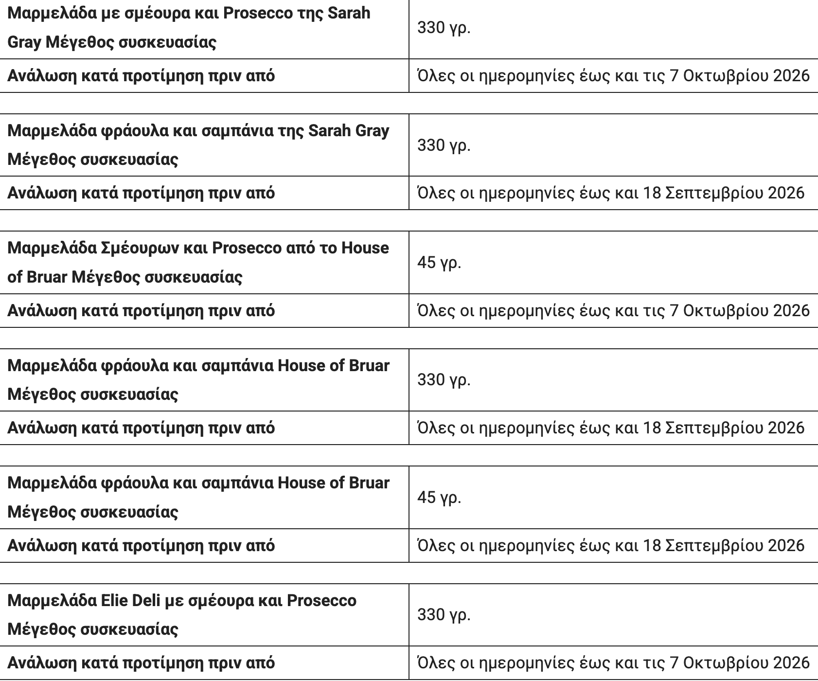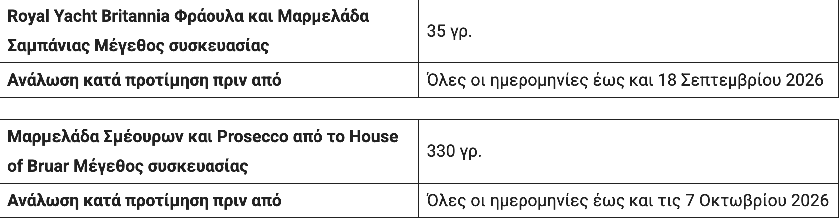 Η Sarah Gray’s ανακαλεί 14 είδη μαρμελάδας σμέουρων και Prosecco και μαρμελάδες φράουλας και σαμπάνιας, επειδή το προϊόν περιέχει θειώδη άλατα, τα οποία δεν αναγράφονται στην ετικέτα. Αυτό σημαίνει ότι το προϊόν αποτελεί πιθανό κίνδυνο για την υγεία για όποιον έχει ευαισθησία στο διοξείδιο του θείου ή στα θειώδη άλατα, σύμφωνα με την ανακοίνωση της Αρχής Ασφάλειας Τροφίμων της Βρετανίας.