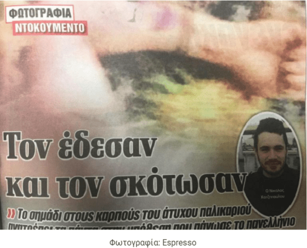 Ο αδικοχαμένος Νίκος Χατζηπαύλου φέρει συμμετρικά σημάδια στα χέρια του, που δείχνουν ότι μάλλον ήταν δεμένος