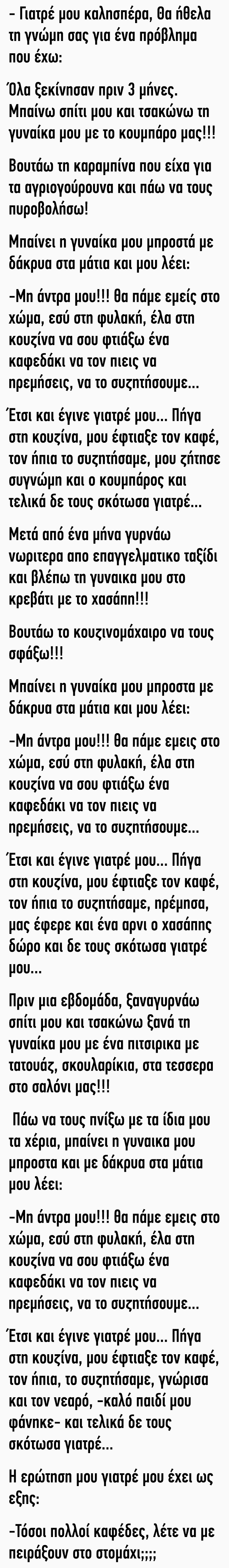 Ανέκδοτo : Γιατρέ μου θα ήθελα τη γνώμη σας για ένα πρόβλημα