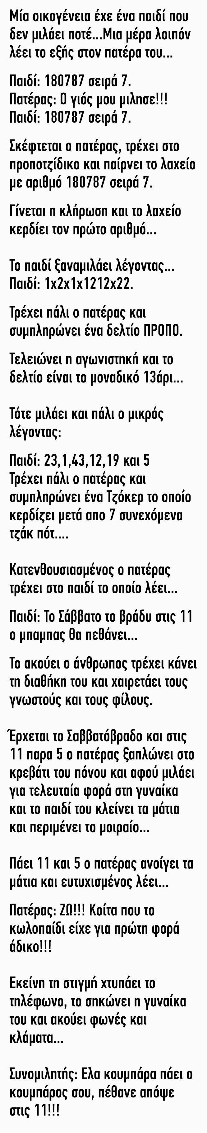 Ανέκδοτο: Μία οικογένεια έχε ένα παιδί που δεν μιλάει ποτέ