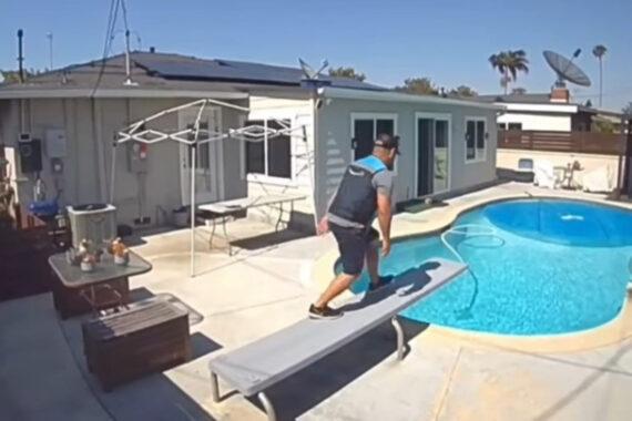 Ειδικότερα, κάμερα ασφαλείας κατέγραψε τον ντελιβερά να κάνει μπάνιο στην πισίνα ενός πελάτη, στο προάστιο Gardena του Λος Άντζελες,