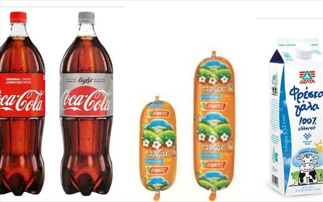 Μεμονωμένες συσκευασίες “COCA – COLA” σε πλαστική συσκευασία PET του 1,5 λίτρου Μεμονωμένες συσκευασίες “COCA – COLA LIGHT” σε πλαστική συσκευασία PET του 1,5 λίτρου Συσκευασίες “Παριζάκι Υφαντής” των 500γρ. και των 350γρ. Φρέσκο Γάλα Πλήρες ΔΕΛΤΑ του 1 λίτρου σε χάρτινη συσκευασία μπλε χρώματος Επίσης, οι αλυσίδες σούπερ μάρκετ σε Αθήνα και Θεσσαλονίκη καλούνται να απομακρύνουν τα εν λόγω προϊόντα άμεσα από τους χώρους πώλησης.