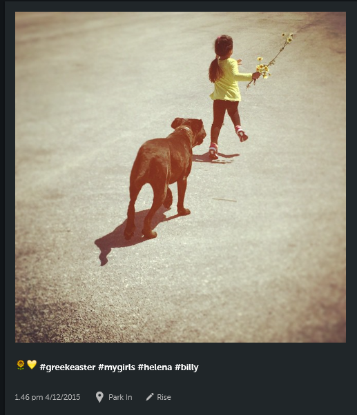 Η παρουσιάστρια «ανέβασε» στην προσωπική της σελίδα στο Instagram τρεις φωτογραφίες από την εξόρμησή τους. Στην πρώτη απεικονίζεται η κόρη της Έλενα που κάνει βόλτα με το σκύλος της.