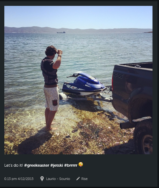 Στη δεύτερη φωτογραφία είναι πάλι η Έλενα στη θάλασσα, ενώ στην τρίτη φωτογραφία απεικονίζεται ο σύζυγός της Βαγγέλης Ταρασιάδης ο οποίος είναι έτοιμος να κάνει jet ski.