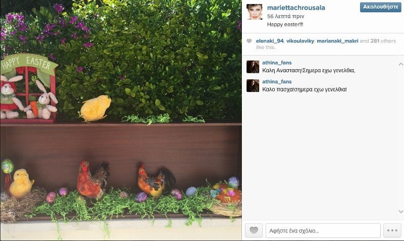 Μία στιγμή από το «Πάσχα» της μοιράστηκε μαζί μας και η Μαριέττα Χρουσαλά η οποία δεν ταξίδεψε πουθενά μιας και πριν από ένα μήνα έφερε στον κόσμο το δεύτερο παιδί της.