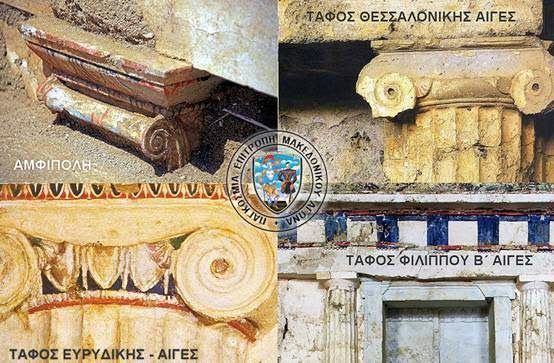 Αντιθέτως οι ανδρικοί Βασιλικοί Τάφοι των Αιγών, έχουν Δωρικά Κιονόκρανα
