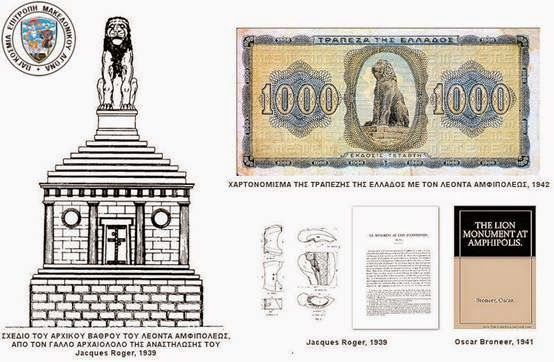 Οι δύο παραπάνω αρχαιολόγοι, προσπάθησαν μάλιστα να σχεδιάσουν το αρχικό βάθρο του Λέοντα, όπως φαίνεται και στο παρακάτω σχέδιο του Jacques Roger, που εκδόθηκε το 1939 και όπου γίνεται φανερό ότι πρόκειται για ξεχωριστό ταφικό μνημείο, ξέχωρο του κάτω τάφου των Σφιγγών!