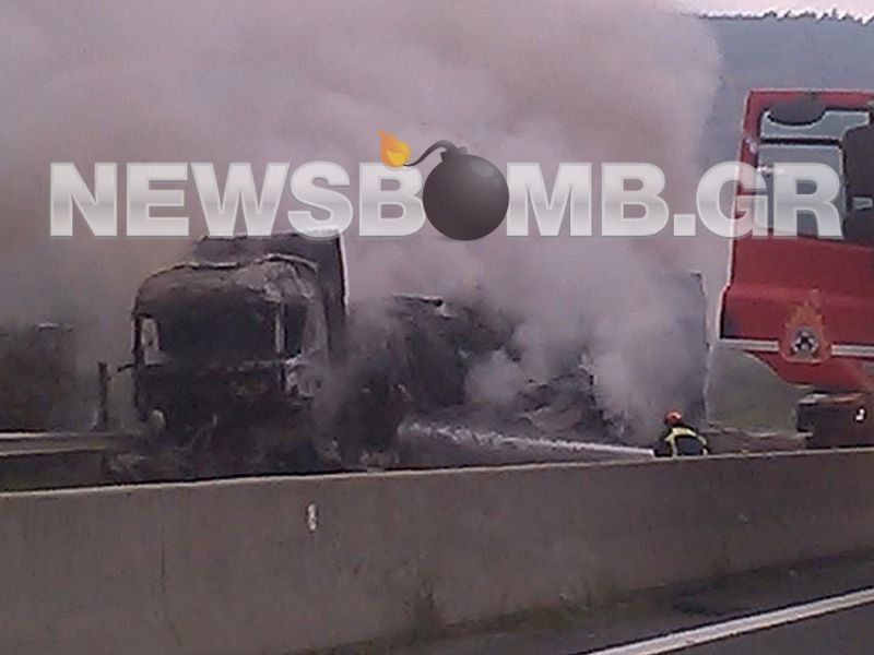 Στη φωτογραφία που έστειλε αναγνώστρια του newsbomb.gr φαίνεται η νταλίκα, στην οποία ξέσπασε φωτιά.