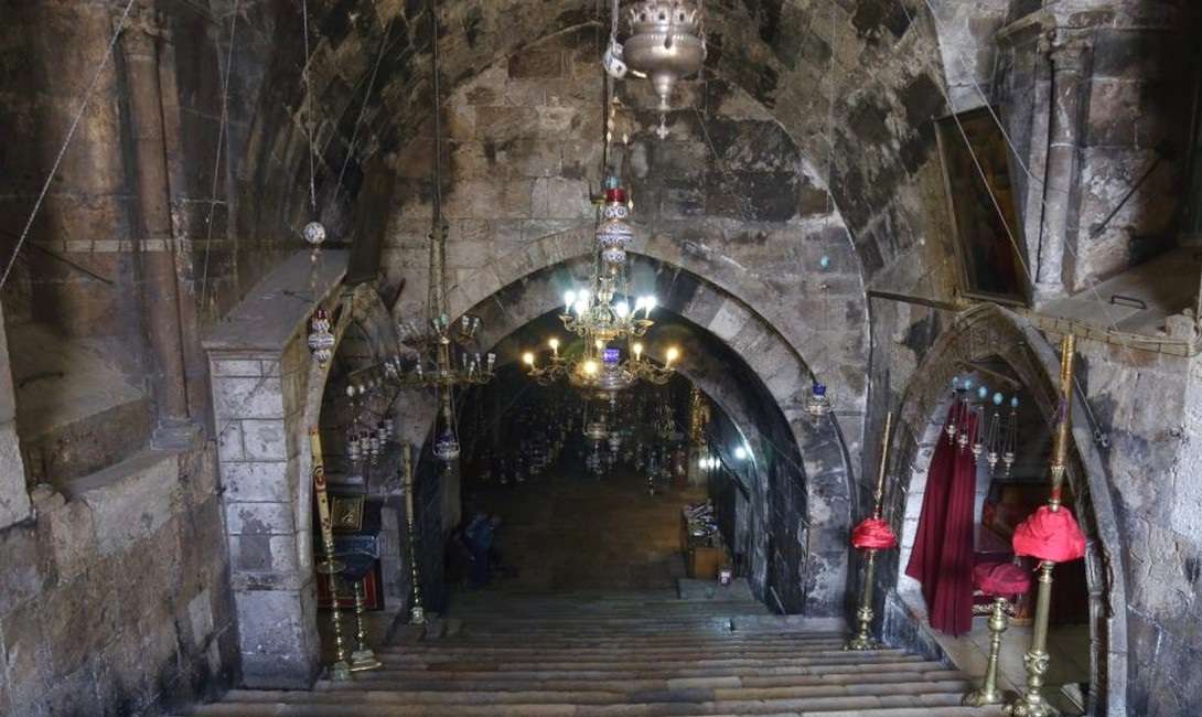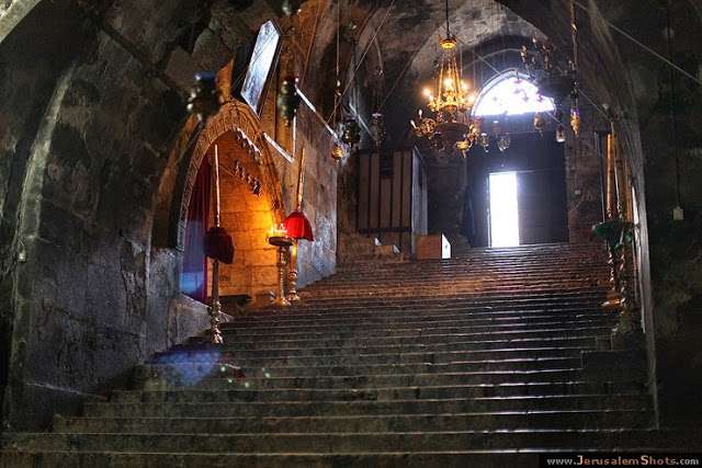 Ο σημερινός Ναός και είναι από τα παλαιότερα χτίσματα της Ιερουσαλήμ, το οποίο χτίστηκε από την Αγία Ελένη το 326μ.Χ. προς τιμήν της Κοιμήσεως Θεοτόκου. Βρίσκεται κάτω απο την επιφάνεια του εδάφους και πρέπει ο επισκέπτης να κατέβει 49 σκαλιά. Αν και είναι μια ταπεινή κρύπτη, ωστόσο στο εσωτερικό της ανακαλύπτει κανείς μια ξεχωριστή μεγαλοπρέπεια. Καταπληκτικός παραλληλισμός με το Υπερευλογημένο πρόσωπο της Θεοτόκου.