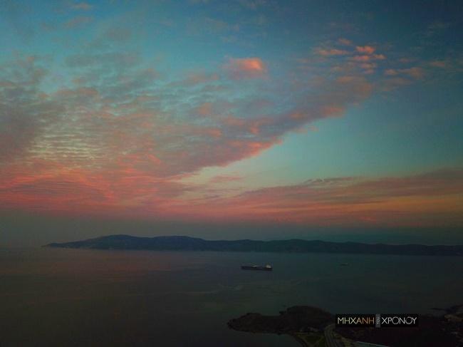 Η Έναρξη του χειμερινού ηλιοστασίου ξεκίνησε αμέσως μετά την δύση του ήλιου στις 21 Δεκεμβρίου. Αερολήψη από το Λαύριο.
